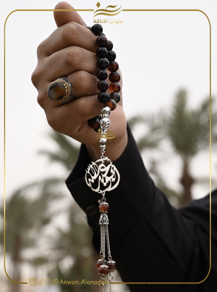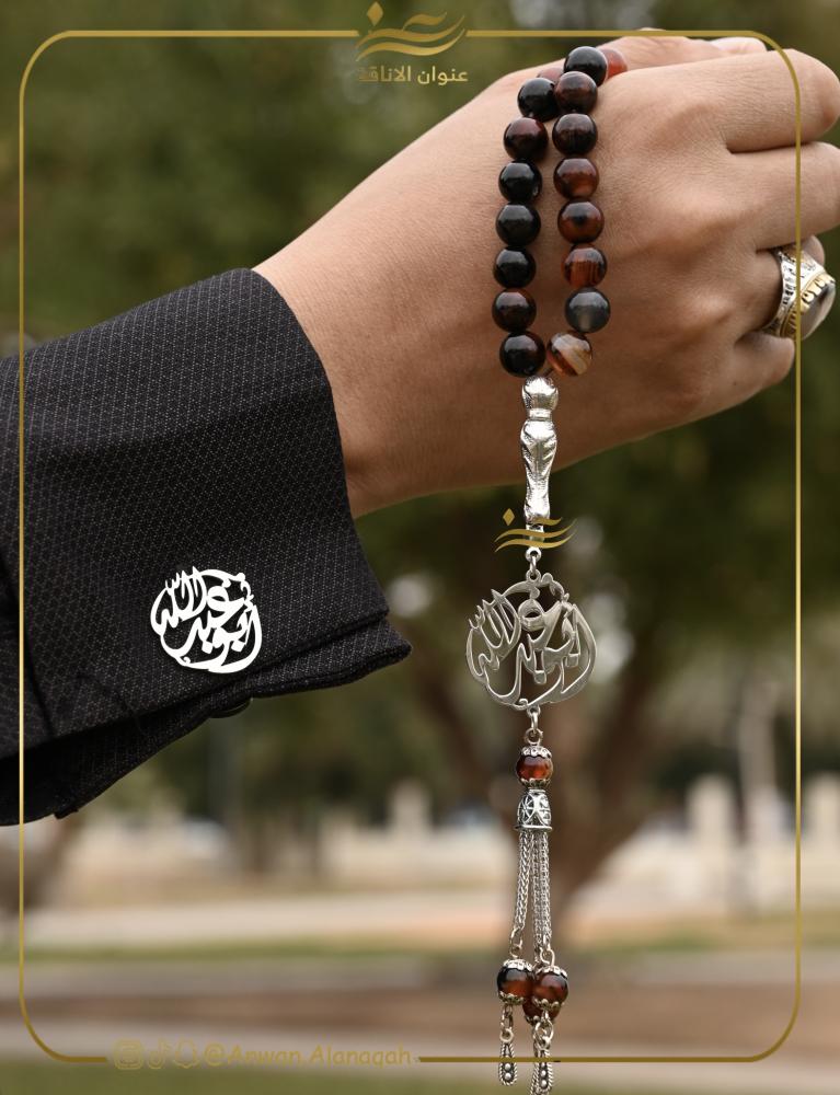 طقم رجالي بالاسم بـ حجر من العقيق البرازيلي البني