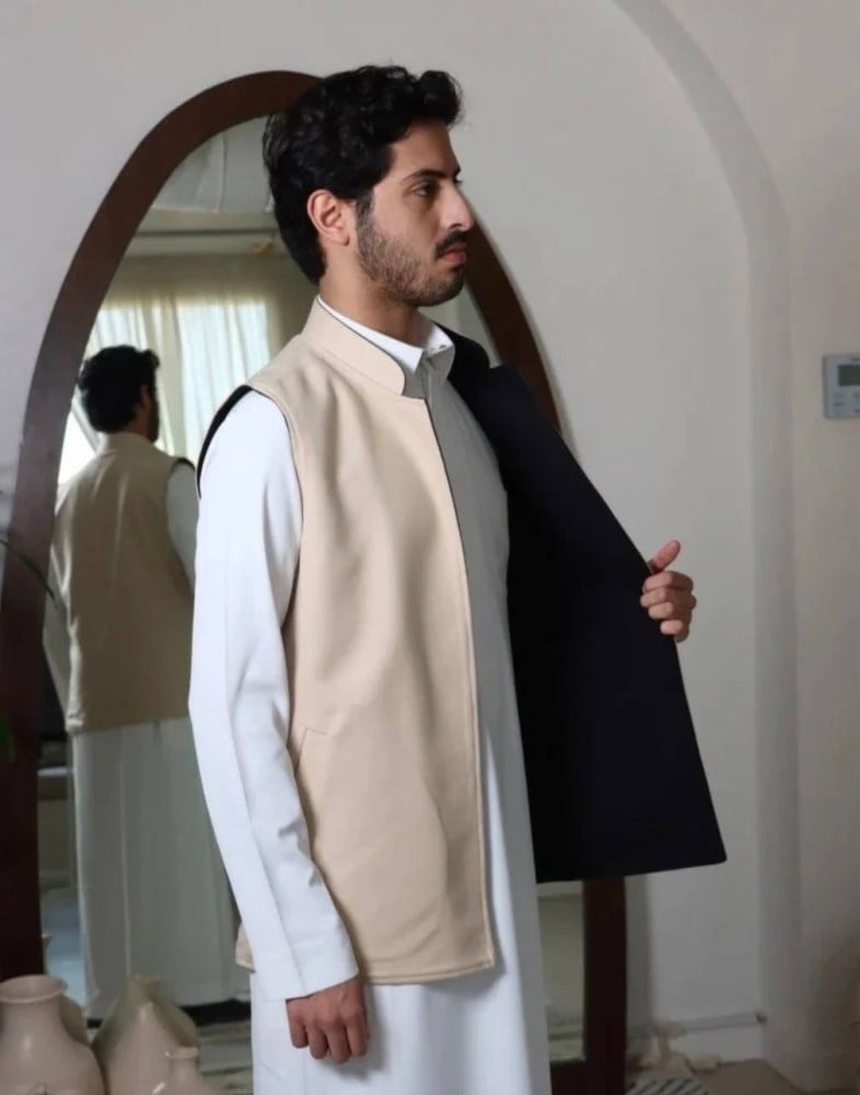 سديري رجالي مصمم بشكل فخم ليعكس صورة عصرية، راقية ومريحة جدًا على ثوبك، يتميز هذا السديري بتصميمه الأنيق الذي يمنحك الفخامة والراحة أثناء ارتدائه ويلفت أنظار الجميع إلى أناقتك، هذا التصميم الفريد والمميز مصنوع من أفضل واجود خامات الانسجة التي توفر لك الدفء في الشتاء والملمس الناعم على البشرة، صمم هذا السديري ذي الوجهين ليتم ارتداؤه على كلا الجانبين حتى تتمكن من تغيير مظهرك ليبقيك في أفضل حالاتك طوال الموسم.