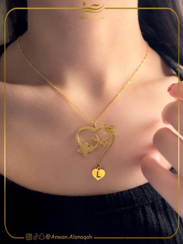تفاصيل المنتج:سلسال بالاسم بتصميم قلب بالاسم والحرفمتوفر بـ طلاء لون ذهبي او فضيتصميم الاسم والشكل حسب الطلب