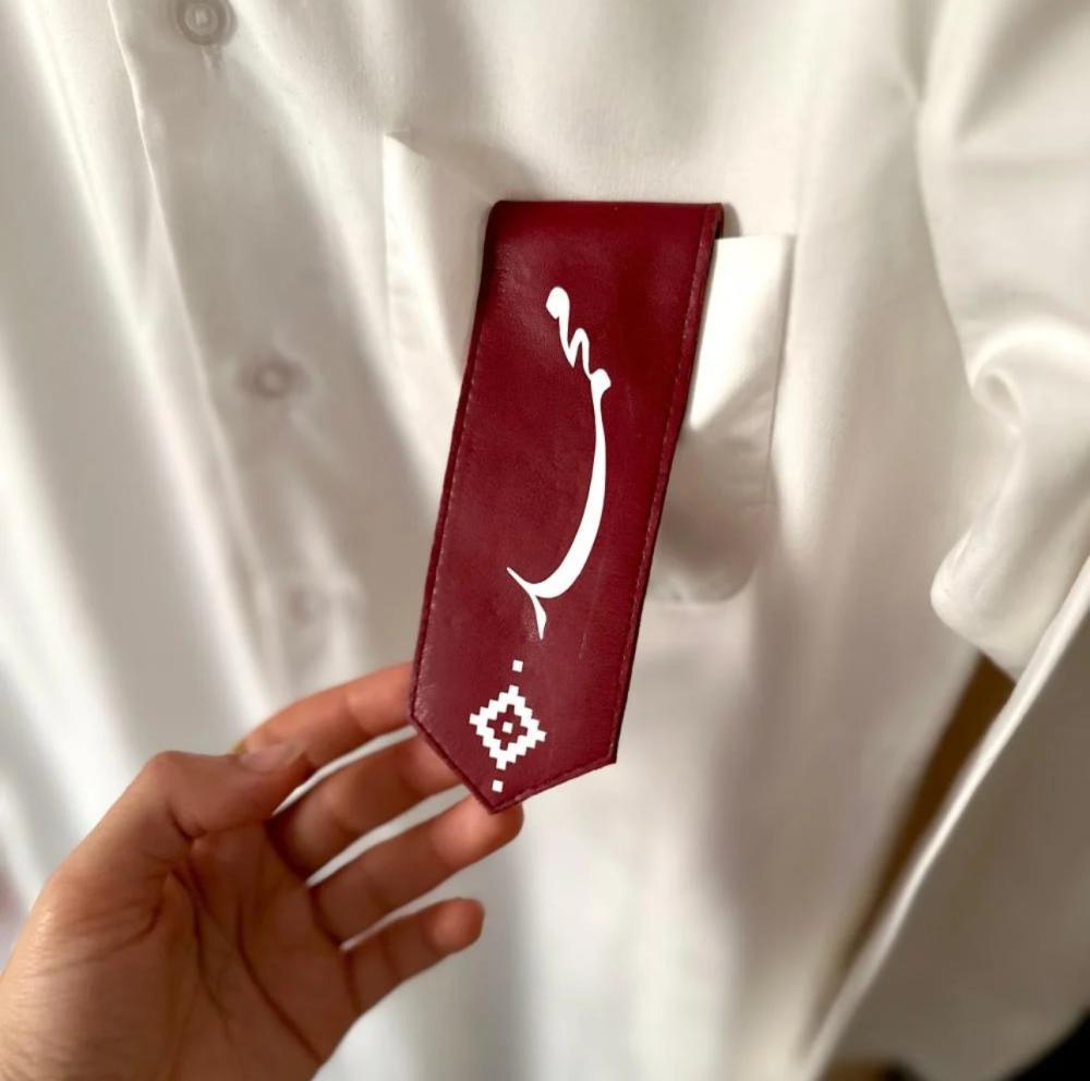 بروش العيد مصنوع من الجلد الفاخر مزين بإسم طفلكاضافة انيقة لجيب الثوب او القميص ، للعيد والمناسبات المميزةطريقة التثبيت :يوجد في طرف قطعة الجلد مغناطيس لتثبيت البروش على الجيب بسهولة بدون ترك أثر على القماش